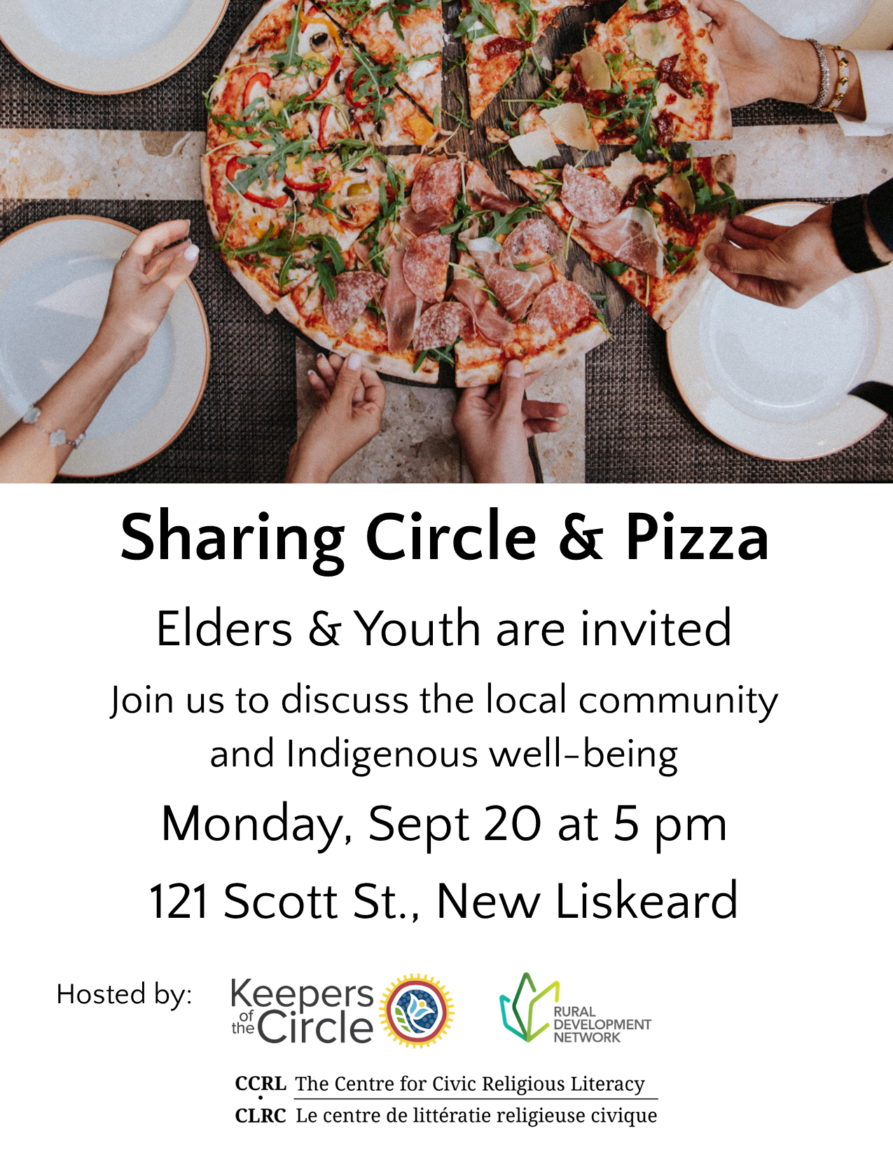 - Sept 2021, Cercle de partage avec les jeunes et les aînés autour de New Liskeard, ON